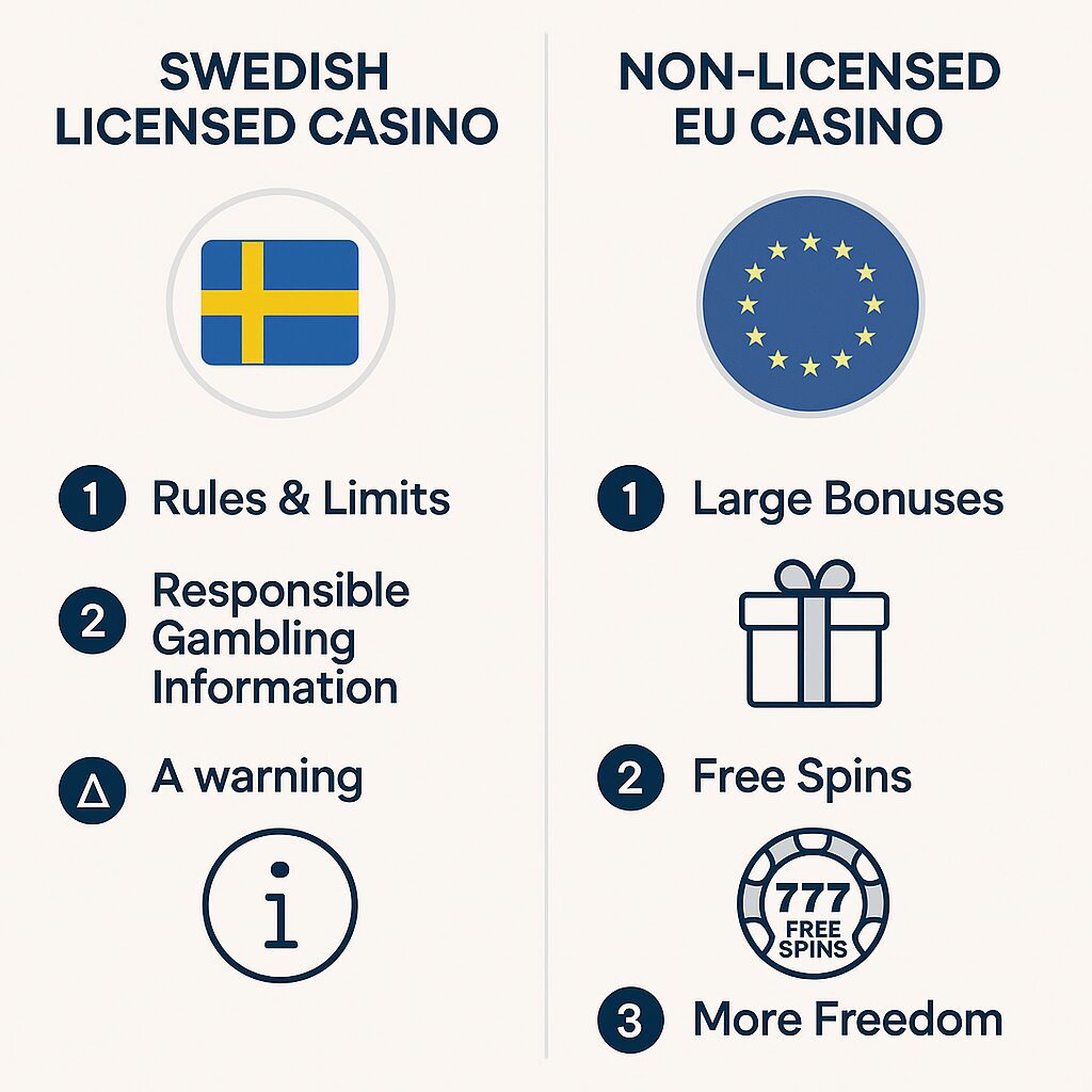 Ska du hålla dig till svenska casinon trots att det inte ger dig något att tala om vad gäller bonusar? När du funderar på att blicka utåt och testa casino utan licens kan du undra om det är det värt. Det finns ju trots allt en risk att du inte kommer att känna dig lika säker som du gör på ett svenskt casino. Men är det verkligen sant?